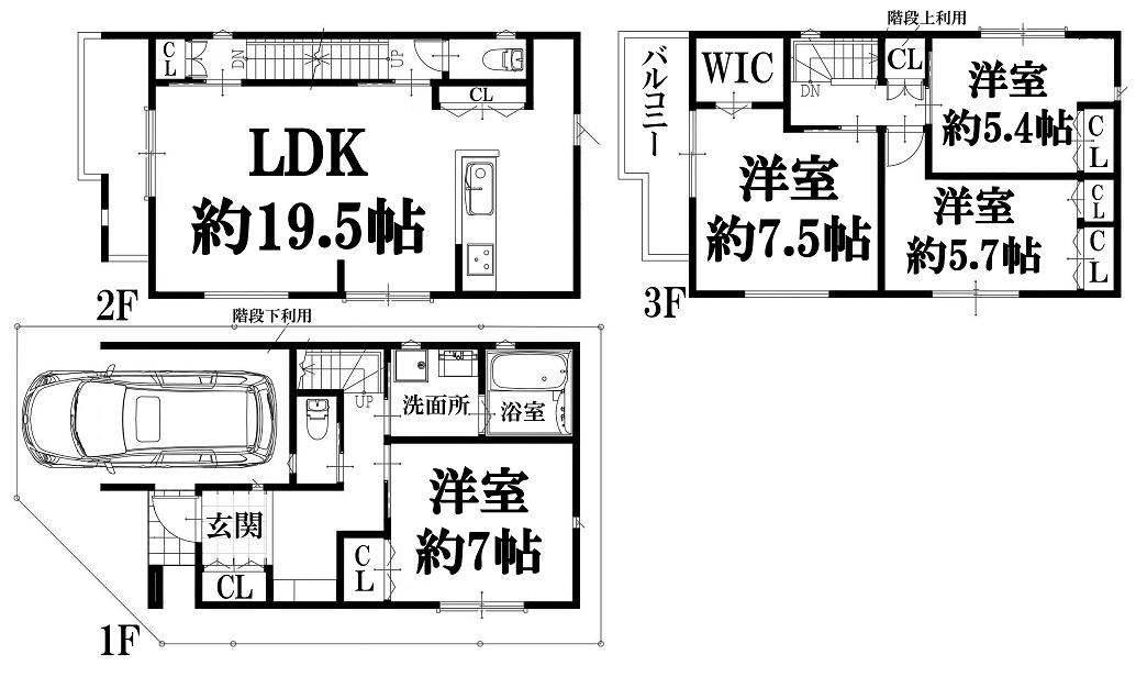 | 間取り | 4LDK (LDK 19.5帖 洋室 約7.5帖 洋室 約7帖 洋室 約5.7帖 洋室 約5.4帖 ) | ||