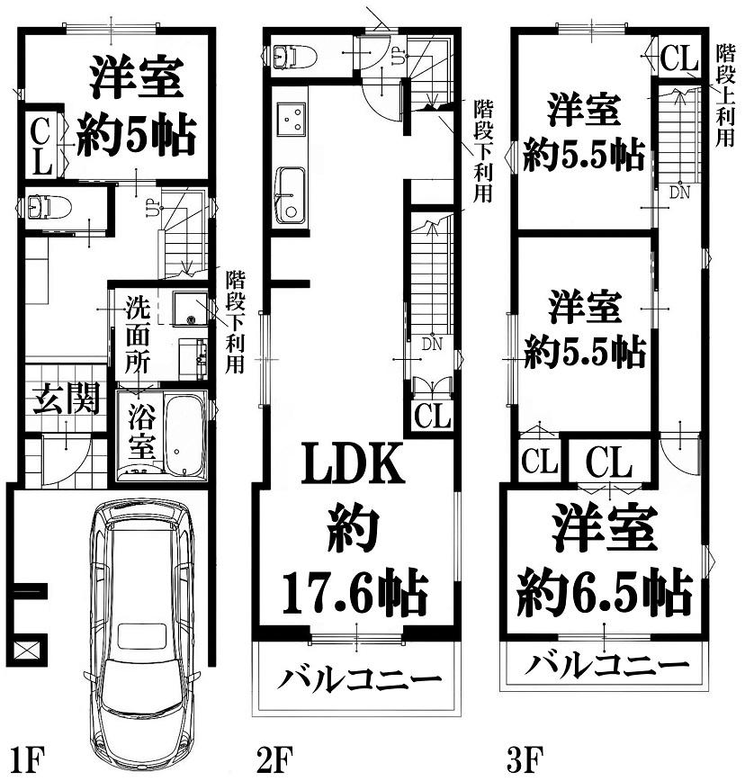 | 間取り | 4LDK (LDK 17.6帖 洋室 約6.5帖 洋室 約5.5帖 洋室 約5.5帖 洋室 約5帖 ) | ||