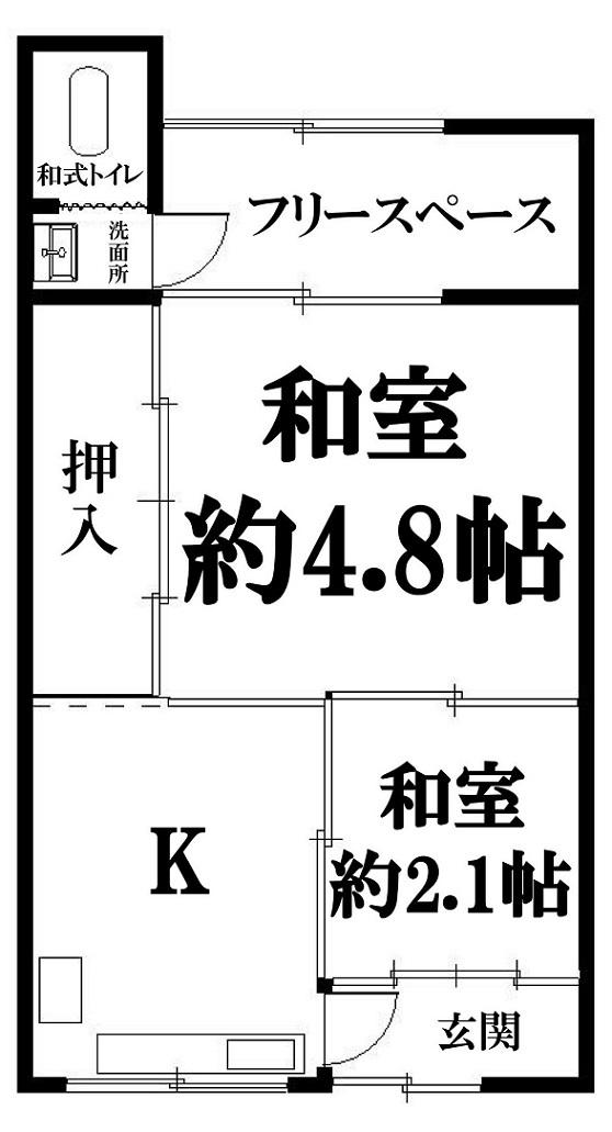 | 間取り | 2K (K 和室 約4.8帖 和室 約2.1帖 その他 ) | ||