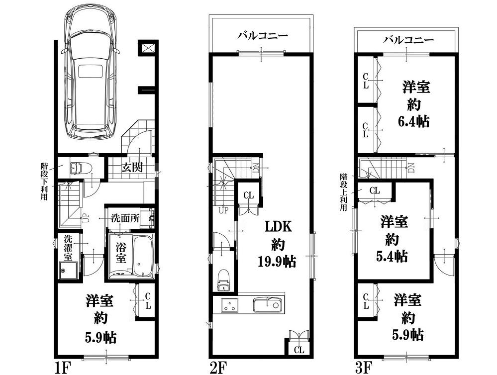 | 間取り | 4LDK (LDK 19.9帖 洋室 約6.4帖 洋室 約5.9帖 洋室 約5.9帖 洋室 約5.4帖 ) | ||