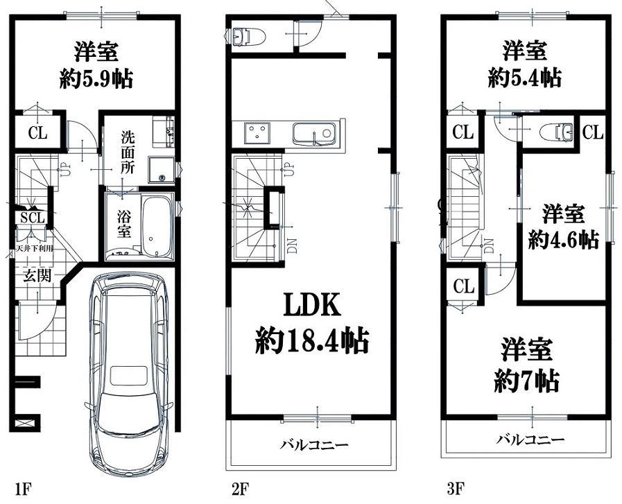 | 間取り | 4LDK (LDK 18.4帖 洋室 約7帖 洋室 約5.9帖 洋室 約5.4帖 洋室 約4.6帖 ) | ||
