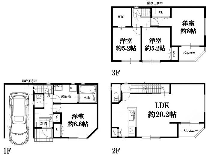 | 間取り | 4LDK (LDK 20.2帖 洋室 約8帖 洋室 約6.6帖 洋室 約5.2帖 洋室 約5.2帖 ) | ||
