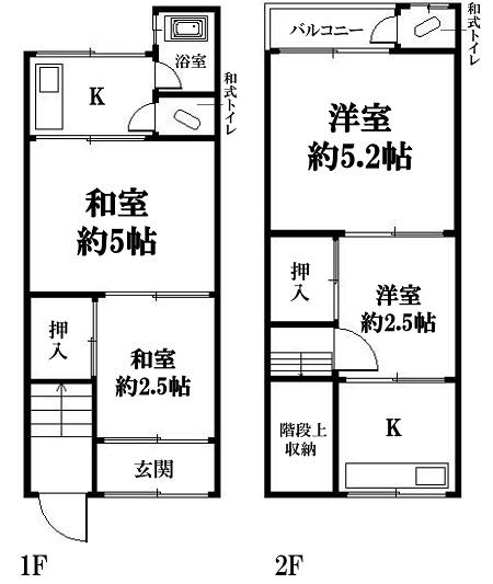 | 間取り | 4KK (K K 洋室 約5.2帖 和室 約5帖 洋室 約2.5帖 和室 約2.5帖 ) | ||