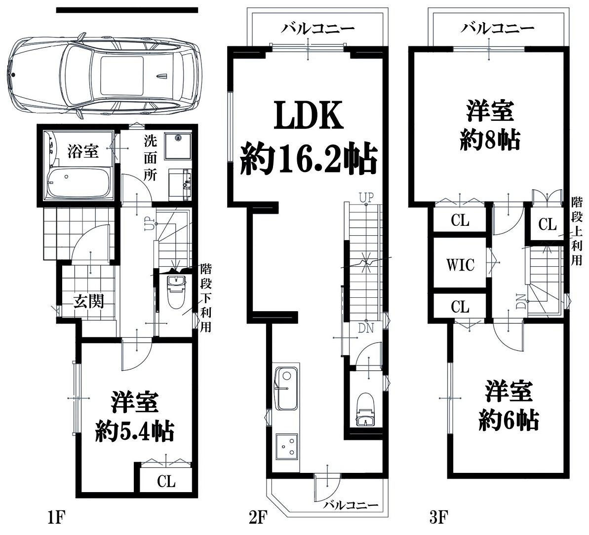 | 間取り | 3LDK (LDK 16.2帖 洋室 約8帖 洋室 約6帖 洋室 約5.4帖 ) | ||