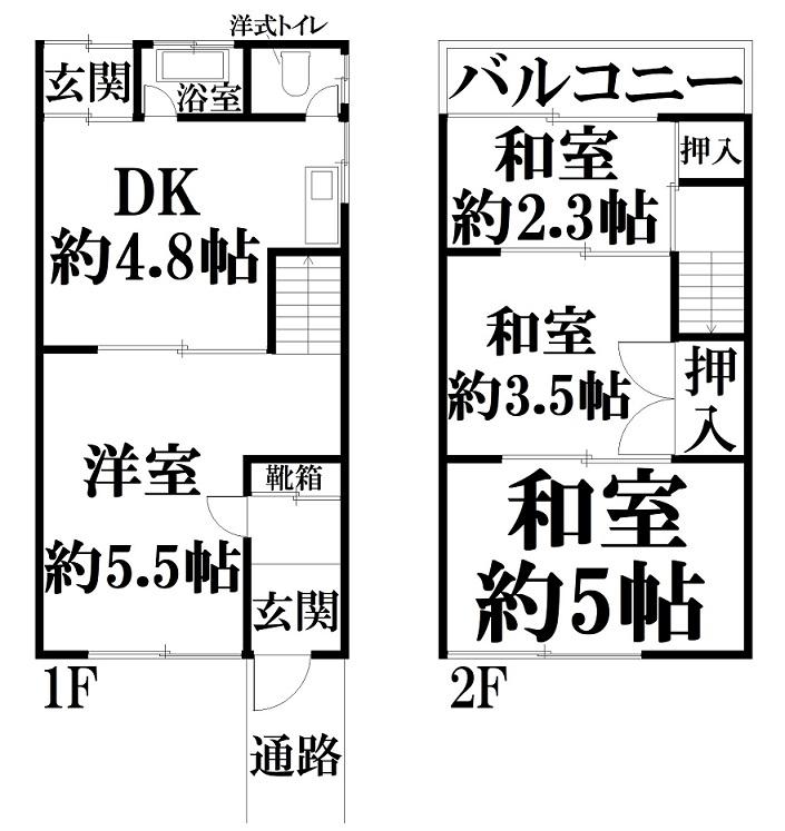 | 間取り | 4DK (DK 4.8帖 洋室 約5.5帖 和室 約5帖 和室 約3.5帖 和室 約2.3帖 ) | ||