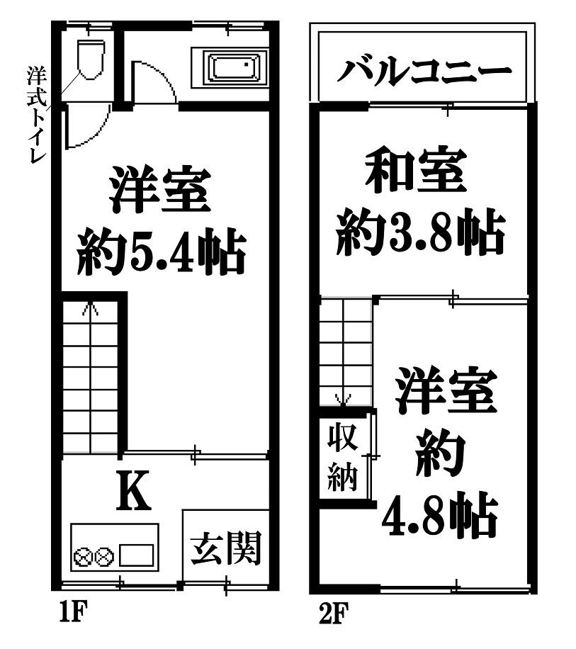 | 間取り | 3K (洋室 5.4帖 洋室 約4.8帖 和室 約3.8帖 ) | ||
