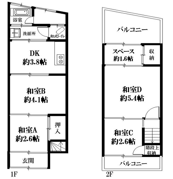 | 間取り | 4DK (DK 3.8帖 和室 約5.4帖 和室 約4.1帖 和室 約2.6帖 和室 約2.6帖 ) | ||