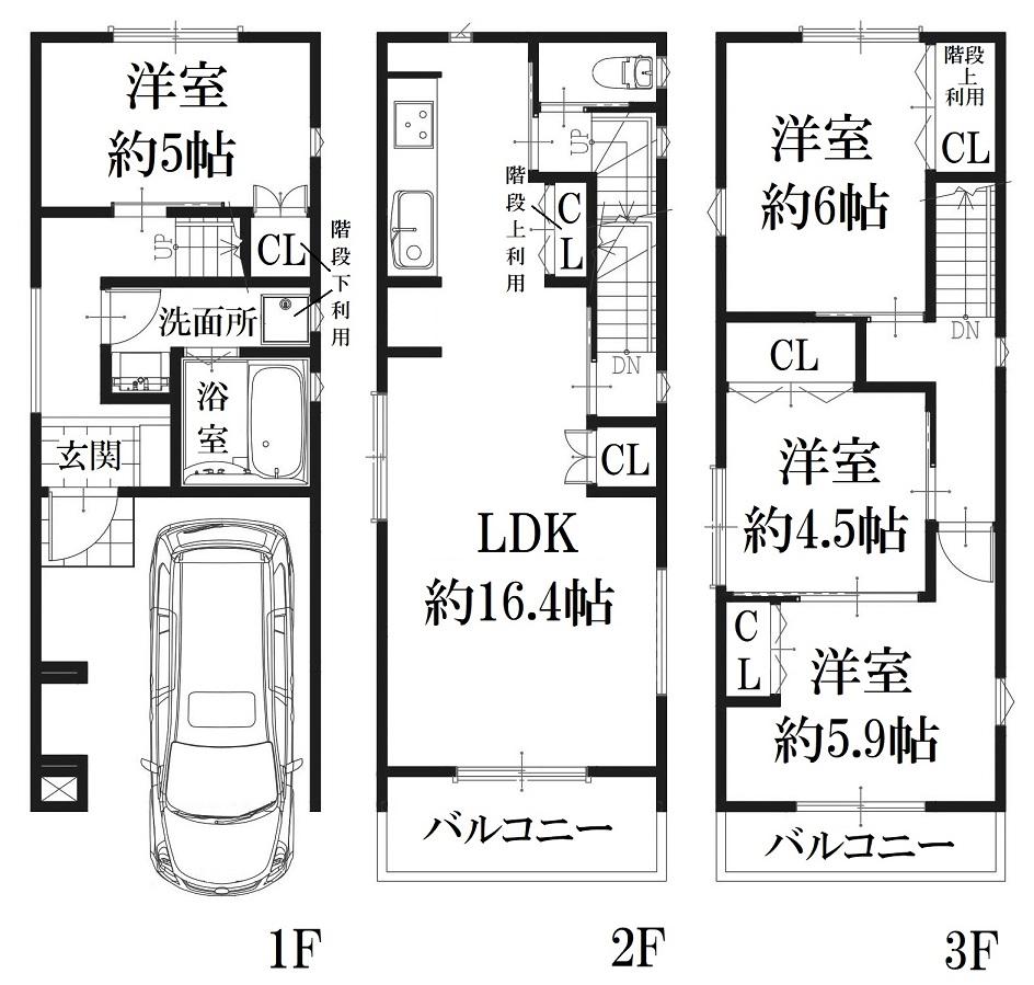 | 間取り | 4LDK (LDK 16.4帖 洋室 約6帖 洋室 約5.9帖 洋室 約5帖 洋室 約4.5帖 ) | ||