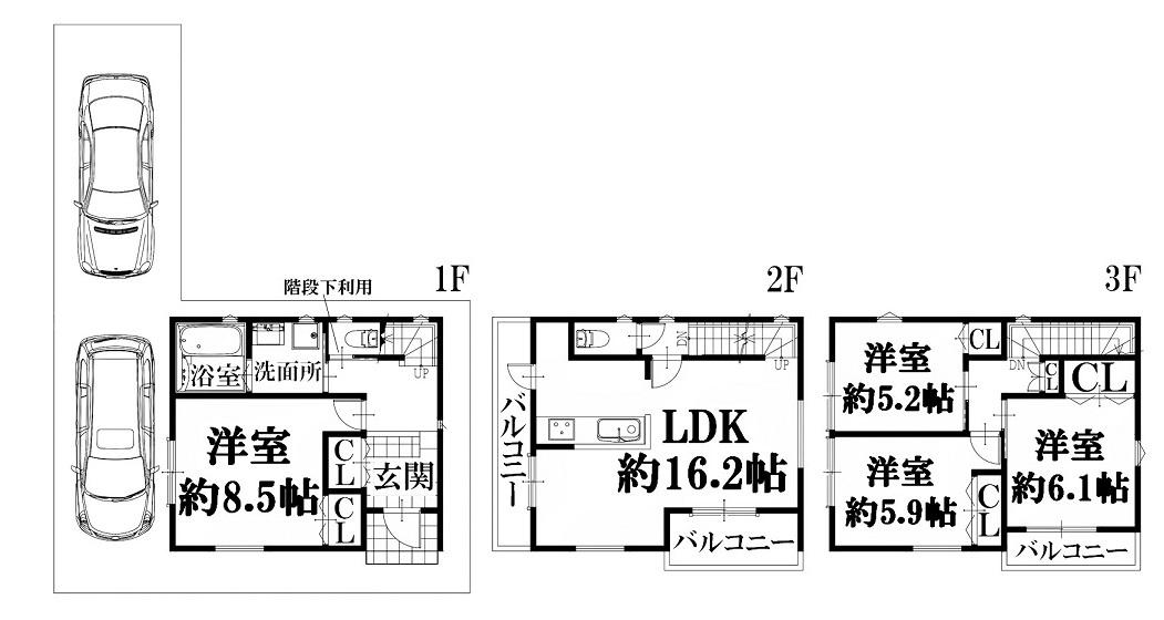 | 間取り | 4LDK (LDK 16.2帖 洋室 約8.5帖 洋室 約6.1帖 洋室 約5.9帖 洋室 約5.2帖 ) | ||
