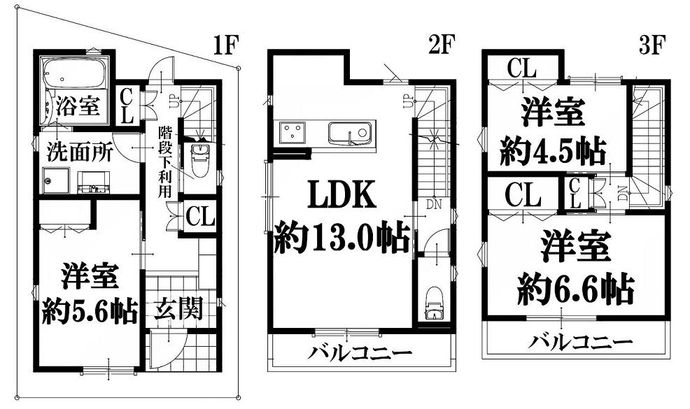 | 間取り | 3LDK (LDK 13.0帖 洋室 約6.6帖 洋室 約5.6帖 洋室 約4.5帖 ) | ||