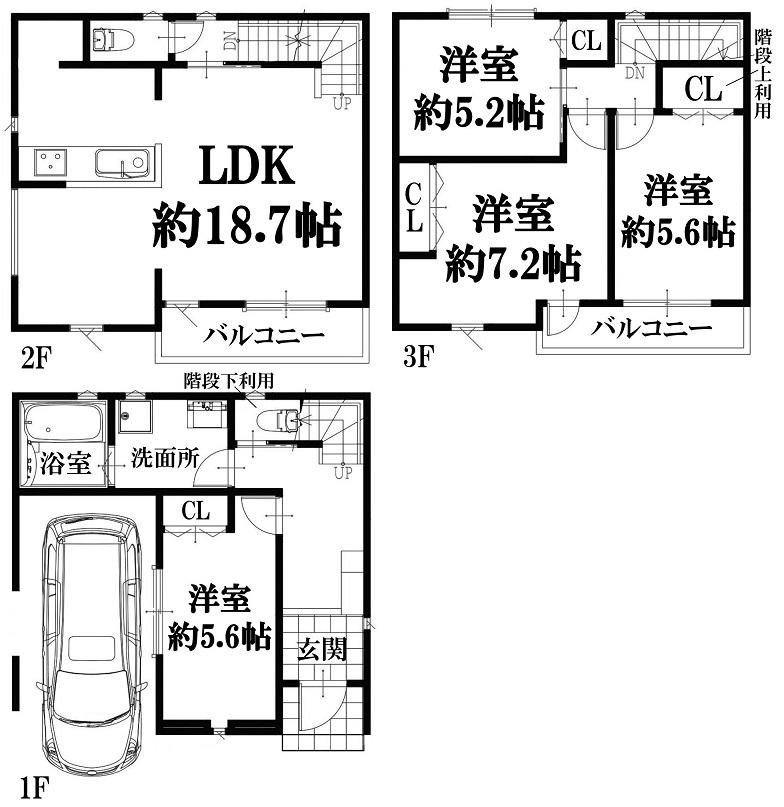 | 間取り | 4LDK (LDK 18.7帖 洋室 約7.2帖 洋室 約5.6帖 洋室 約5.6帖 洋室 約5.2帖 ) | ||