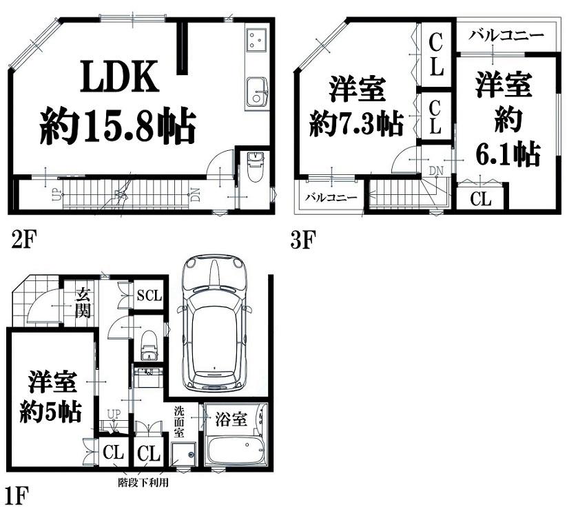 | 間取り | 3LDK (LDK 15.8帖 洋室 約7.3帖 洋室 約6.1帖 洋室 約5帖 ) | ||