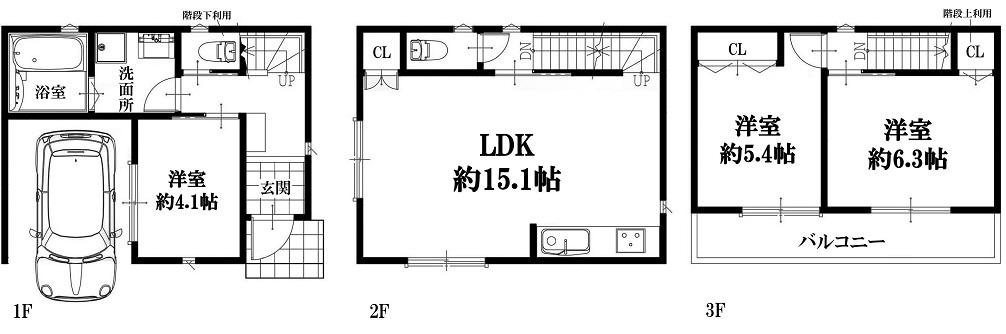 | 間取り | 3LDK (LDK 15.1帖 洋室 約6.3帖 洋室 約5.4帖 洋室 約4.1帖 ) | ||