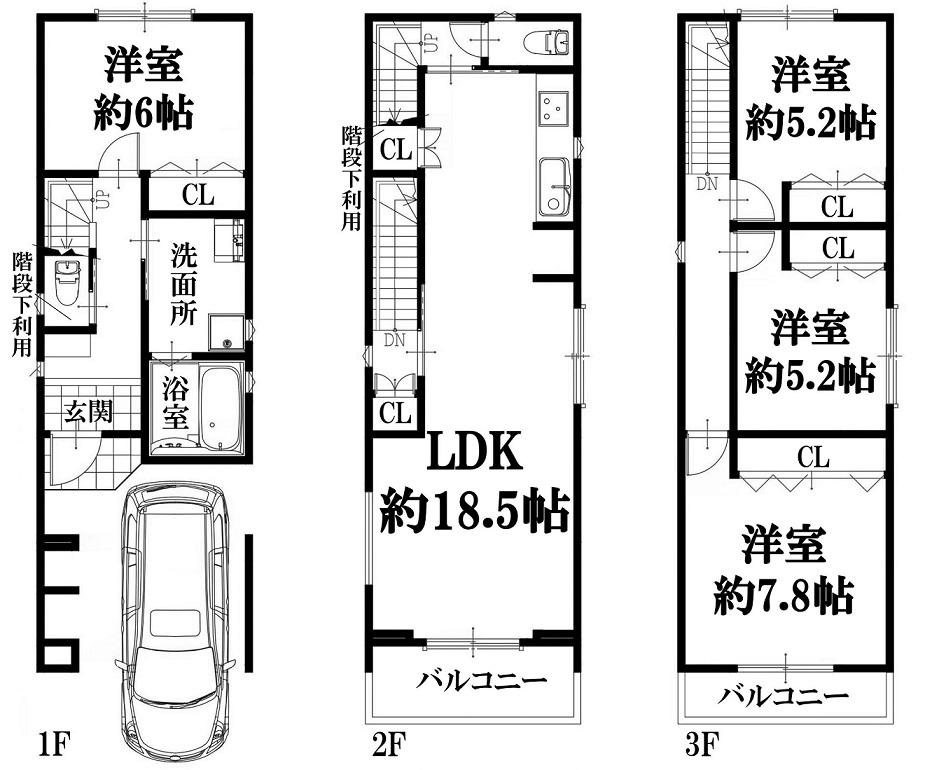 | 間取り | 4LDK (LDK 18.5帖 洋室 約7.8帖 洋室 約6帖 洋室 約5.2帖 洋室 約5.2帖 ) | ||